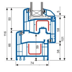 Los perfiles elegantes del S 8000 IQ tienen unas lineas clasicas pronunciadas y suaves contornos. Debido a la anchura de 74 mm. de su seccion, logran todos los requerimientos de proyectos de construccion donde se precisan grandes estructuras en ventanas de alta resistencia